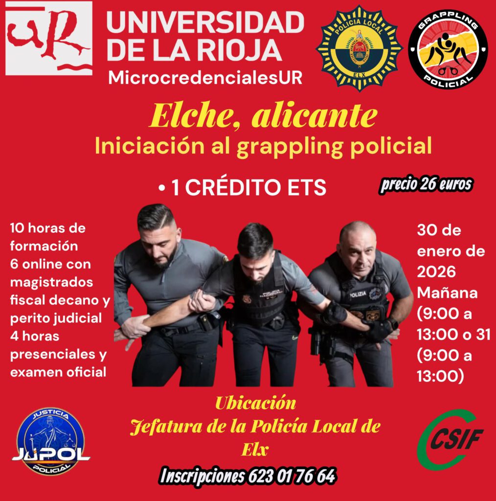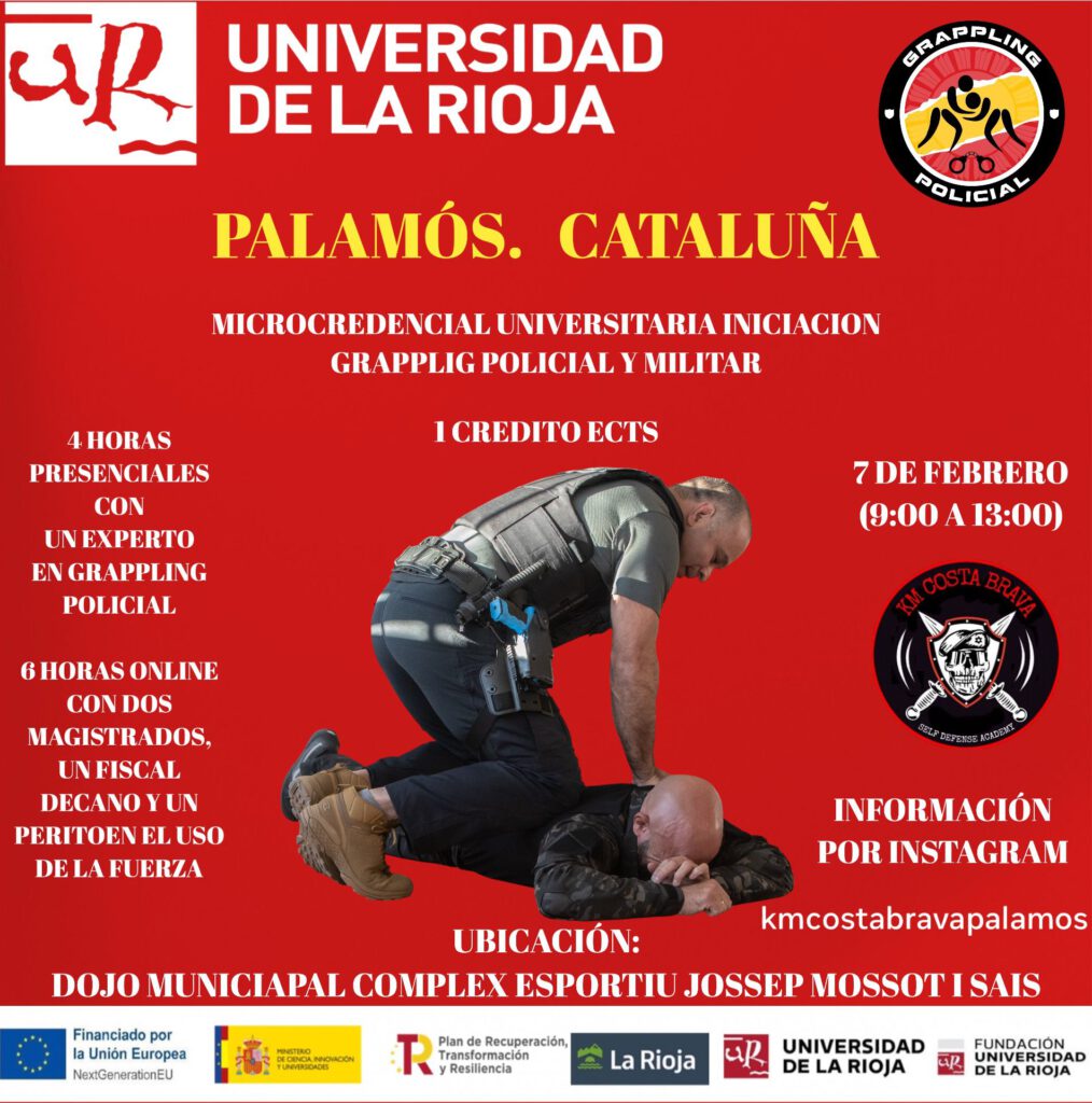 La Universidad de La Rioja lanza la microcredencial «Experto en Grappling Policial/Militar para Formadores», un programa oficial de 14 créditos ECTS en colaboración con Grappling Policial. Este curso semipresencial forma a profesionales de seguridad pública, privada y defensa en técnicas de control no lesivo, desarme y comunicación táctica, respetando derechos fundamentales y marcos legales.[1][2][3]